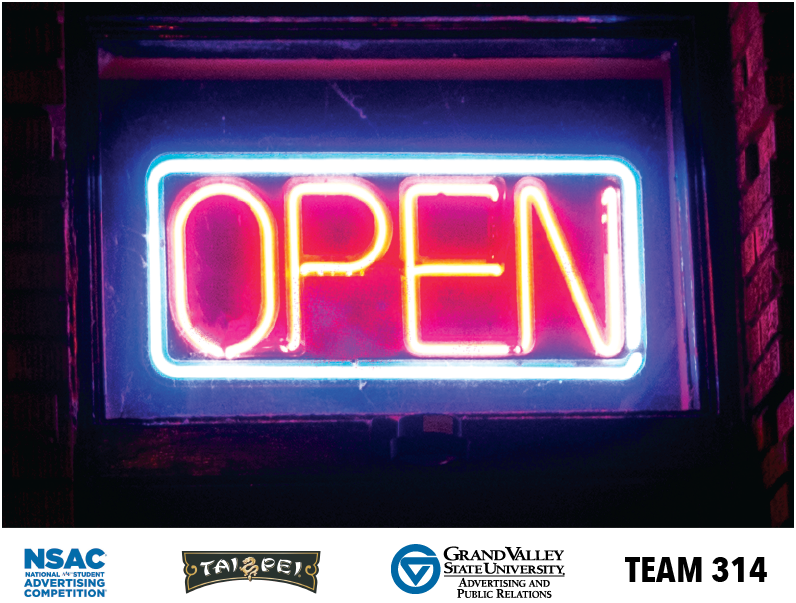 Campaign plans book for client Tai Pei as a part of the 2017 NSAC competition. Awarded 4th in the Nation & Best use of market research in the nation.